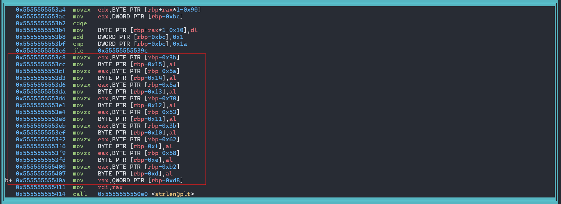 - In gdb this would be the following piece of ASM. Where we also set a Breakpoint again. Preferably somewhere at the end of it. I set mine at